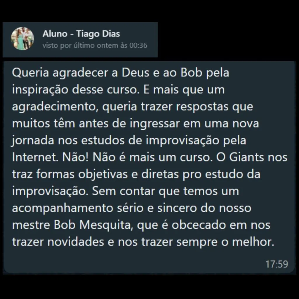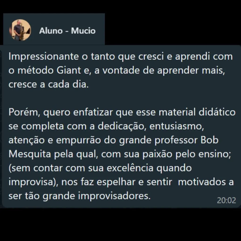 O Curso Giant é espécie de “treinamento” de improvisação, simulando a realidade. Não estamos falando de um curso com aulas teóricas para que o aluno assiste e depois pega o instrumento para estudar.