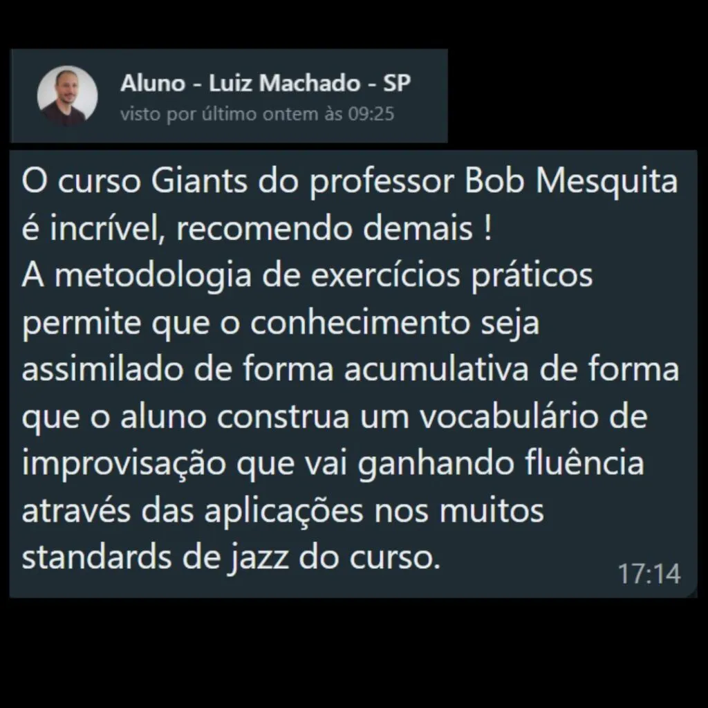 O Curso Giants é uma sequência de quase 400 exercícios de improvisação, no qual o aluno toca junto com o professor.