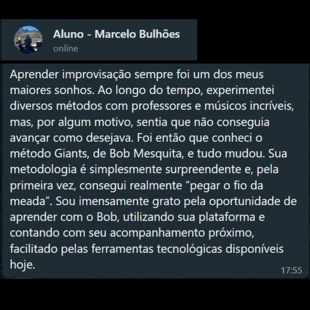 Esse curso é resultado de mais de 7 (sete) anos de aulas particulares de improvisação, nas quais formamos mais mais de 60 alunos, com um aproveitamento monumental de mais de 90%.